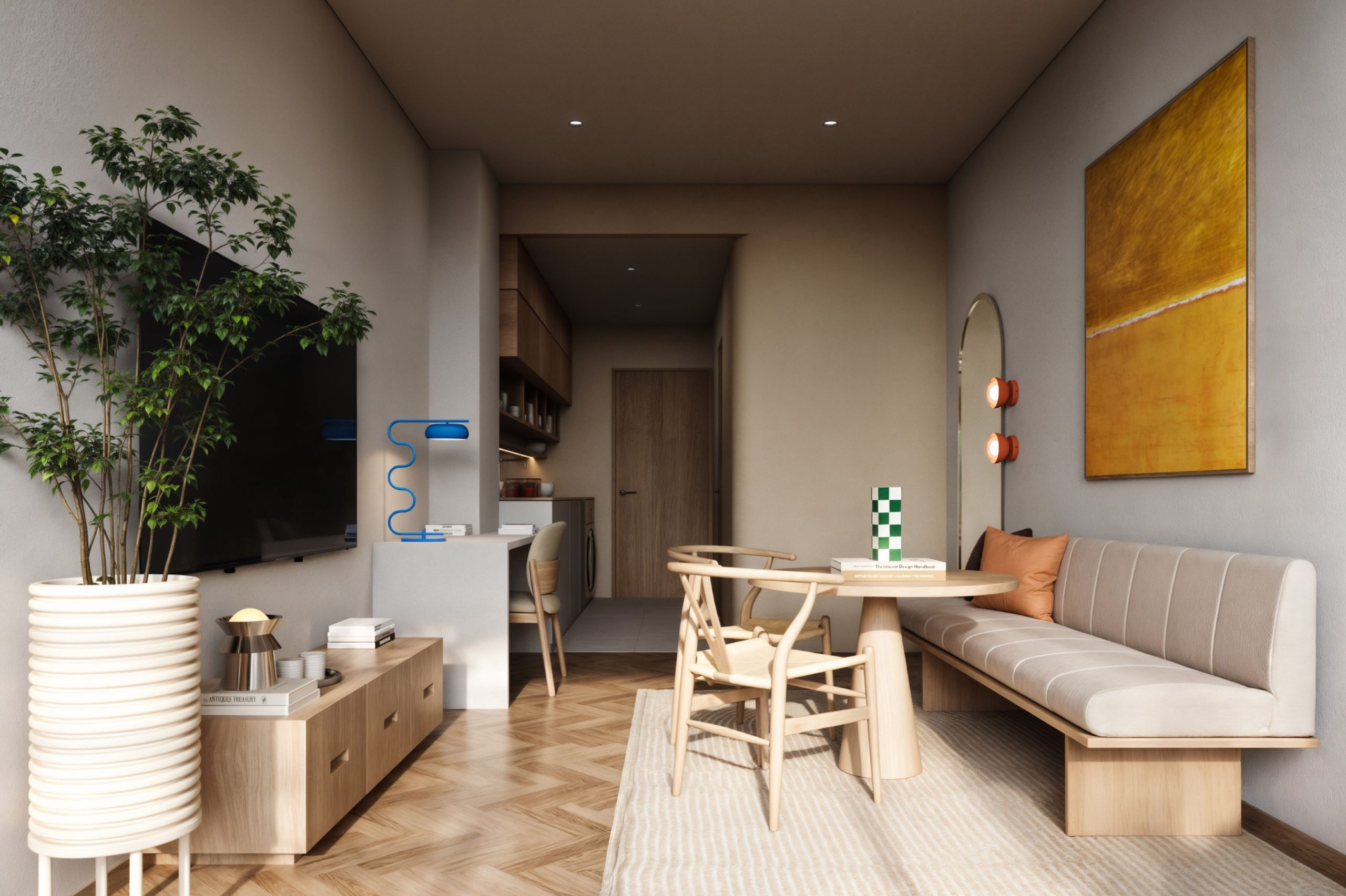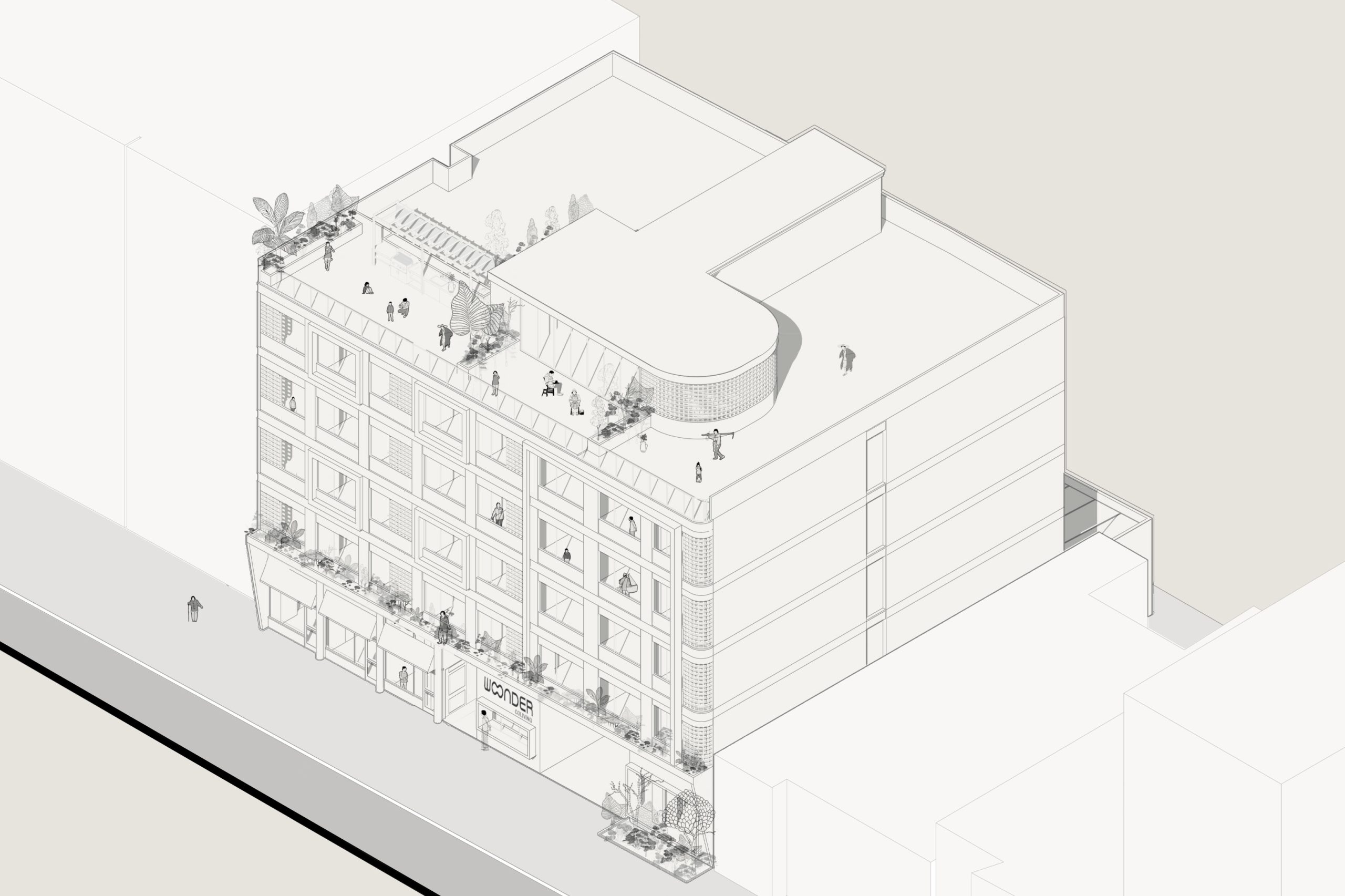La materialidad del edificio Wonder en Bogotá es una fusión entre lo tradicional y lo contemporáneo. La elección de ladrillo rústico, símbolo de la herencia arquitectónica de la ciudad, es una muestra de la tradición ladrillera local. Este material, que ofrece no solo durabilidad, sino también un carácter cálido y texturizado, establece una conexión emocional con la historia y la cultura de Bogotá.